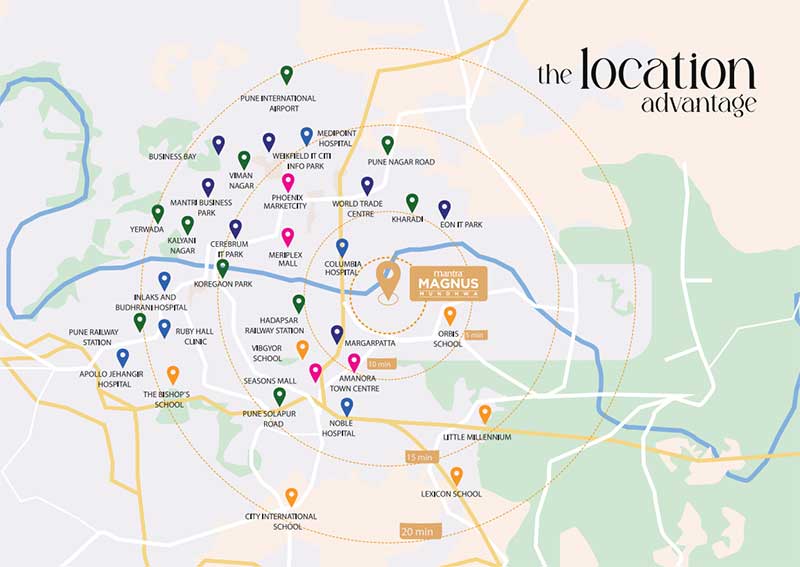 In Mundhwa, Mantra Magnus offers easy access to premier schools, outstanding healthcare facilities, exciting entertainment options, and convenient shopping complexes. Whether through a brief drive or a leisurely stroll, you will effortlessly reach these essential amenities, ensuring that your daily living experience is genuinely enjoyable. From business hubs to top educational institutions and healthcare facilities, this exclusive locale caters to every need of the upper crust.